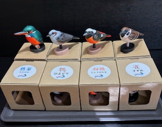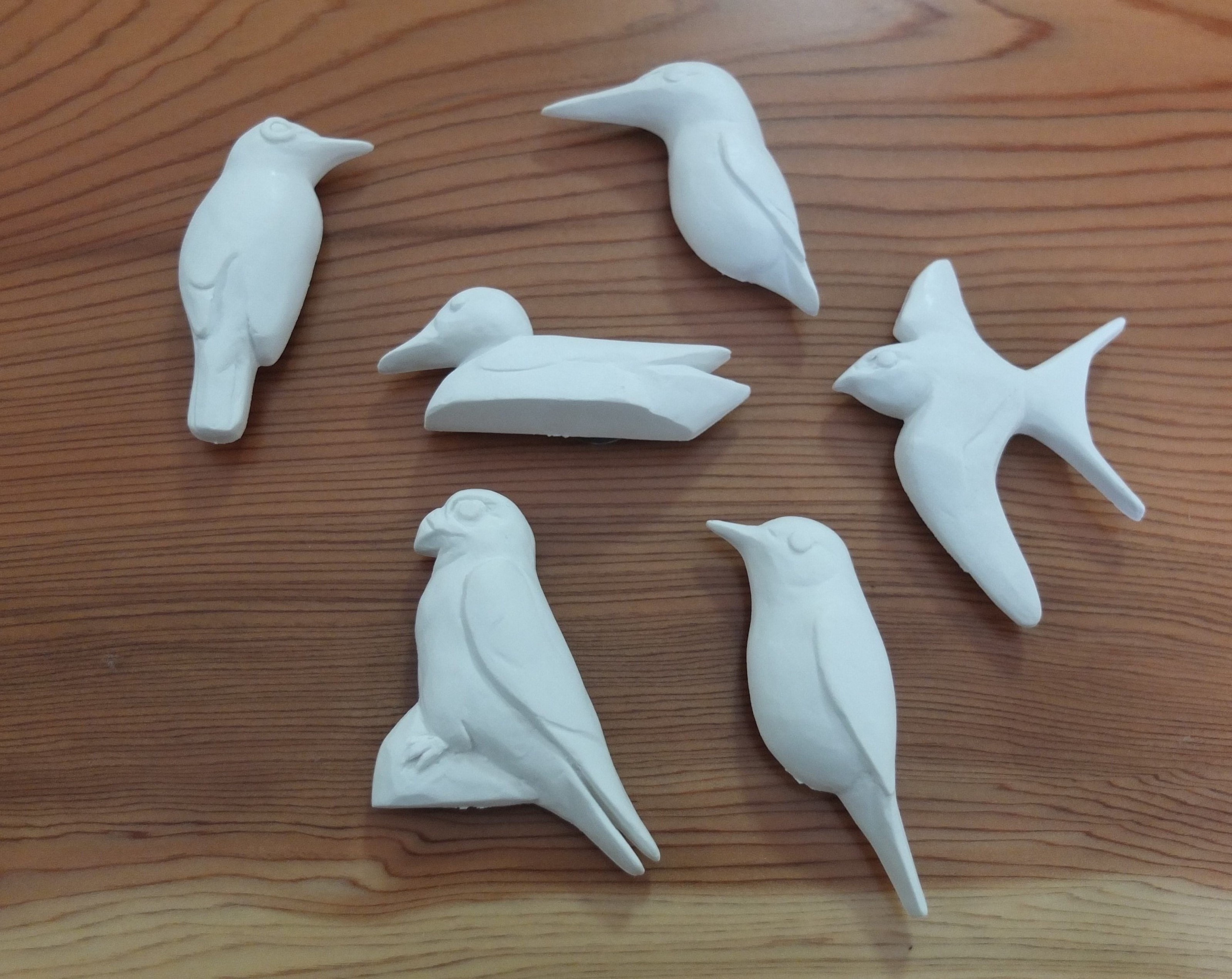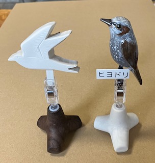 メジロ・ハヤブサ・カモ・カワセミ・ジョウビタキ・ ツバメの6種類。紙51%+プラスチック製です。