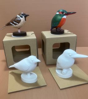 エコデコイ 3Dカワセミ 小鳥 金型にベリリウム銅鋳造を使用して、温かみの あるアールをつけました。 小さなお子様も色付けできます。 | |