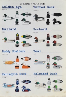 エコデコイ カモ8種イラスト見本です。 イラスト見本を見ながら、作品をつくることができます。 この製品は、木質プラスチック製のため、一度下塗り(白)を 塗って乾かした後に、色付けをすることをおすすめします。 | |