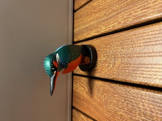 エコデコイ 「色付け品販売コーナー」・・・・・カワセミ kawasemi ¥2200(税込み) アクリル絵の具で彩色した商品です。 高さ65mm*横はば70mm 梱包箱付き。紙プラ製。 |