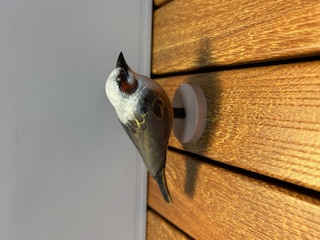エコデコイ 「色付け品販売コーナー」・・・・・ヒヨドリ hiyodori ¥2200(税込み) アクリル絵の具で彩色した商品です。高さ60mm*横はば100mm。梱包箱付き。紙プラ製。 |
